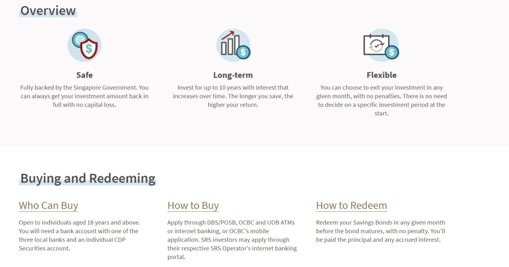 In a current low-interest environment, the average return for 10 years is still a decent 1.45%. Back then when SSB was first introduced in 2018, I bought an SGS Bond which gives an average annual return of 2.63% over 10 years. Every month, there will be a bond contract released with different rates (which may be higher or lower than the previous months), so you can monitor and buy at the returns that you are satisfied with.
