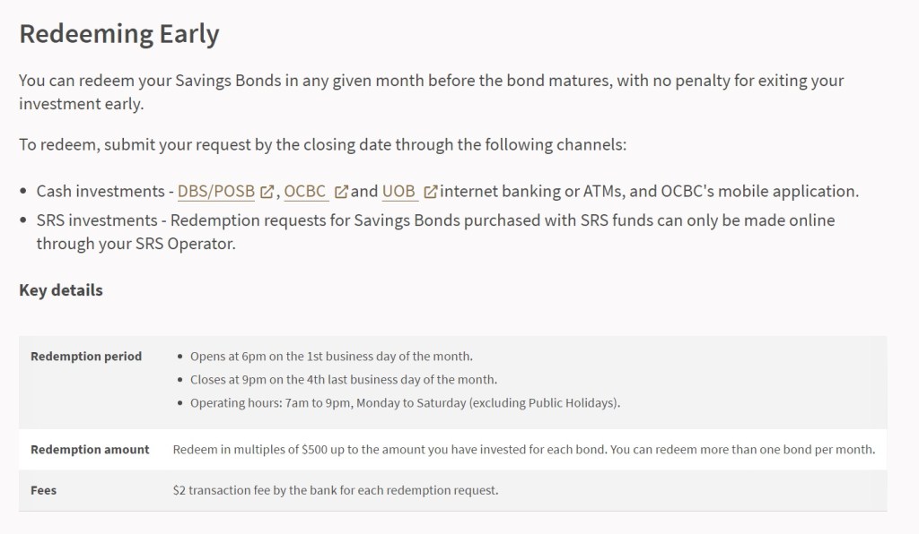 If you are also an investor and feel that the stock market is over-priced, you can park your money in SSB first while waiting for the market to correct before redeeming the bond to free up extra cash for your investment when the stock market corrects. SSB can also be the emergency funds that you can activate on rainy days or in emergency situations where you, unfortunately (touch wood) lose your main source of income.