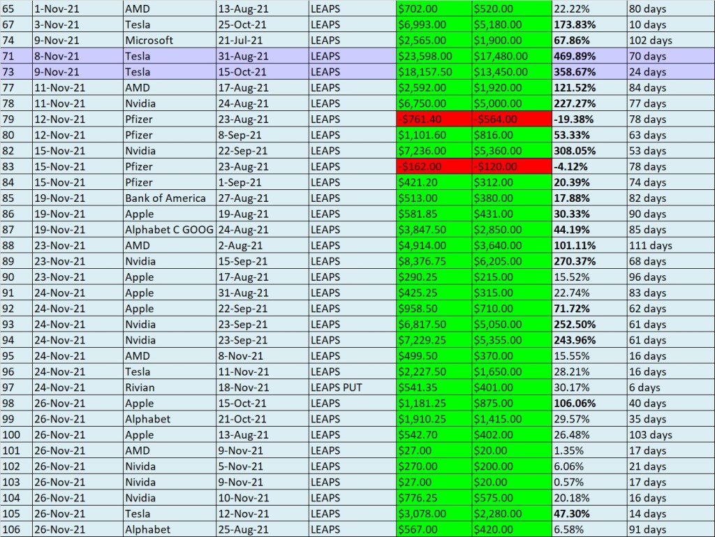 Trading Activity On 23 Nov 21: Sold Off AMD and Nvidia LEAPS for 101% and 270% returns