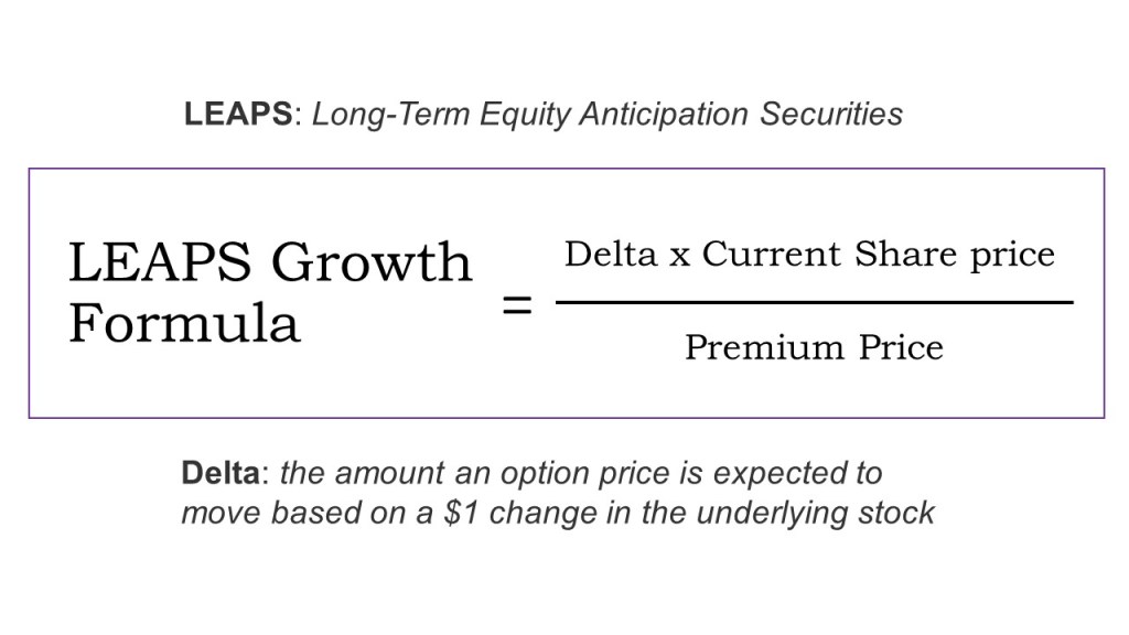 The last reason may surprise you. Based on my LEAPS Growth Formula, the current premium is extremely cheap and can get me a potential 8x the percentage returns on my invested capital relative to the percentage share price gain.