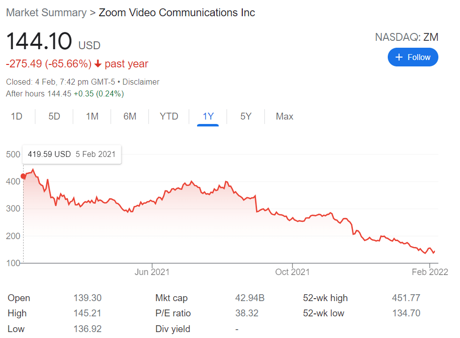 or Zoom, which dropped 65% in share price from a year ago.