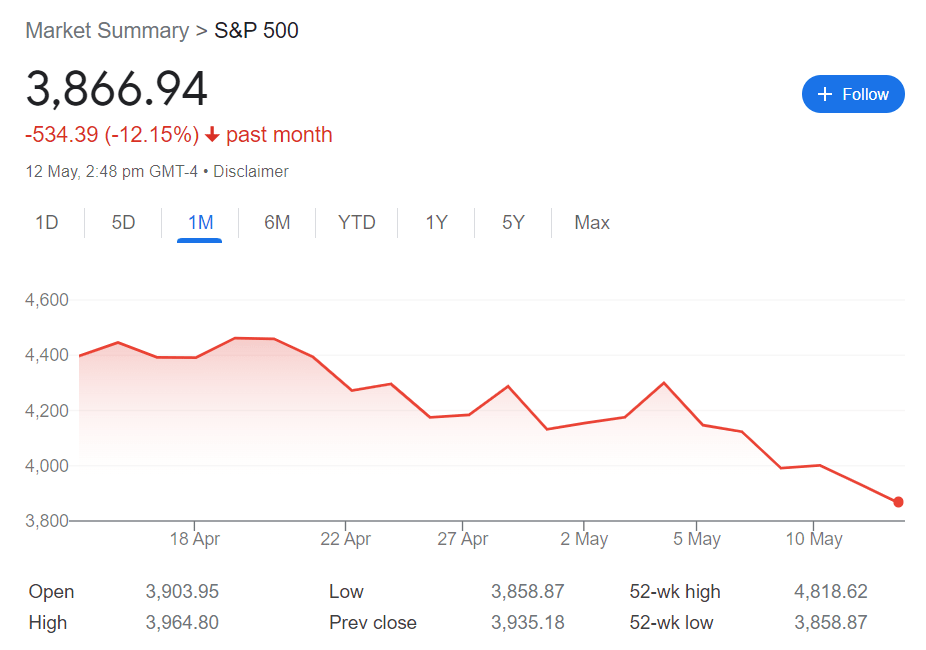 The US stock market continues to free fall after a brief rebound on 4th May 2022, where the Federal Reserves announced an increase in interest rate of 50 basis points. Coupled with CPI data that fell below expectation, the stock market has continued its free-falling.