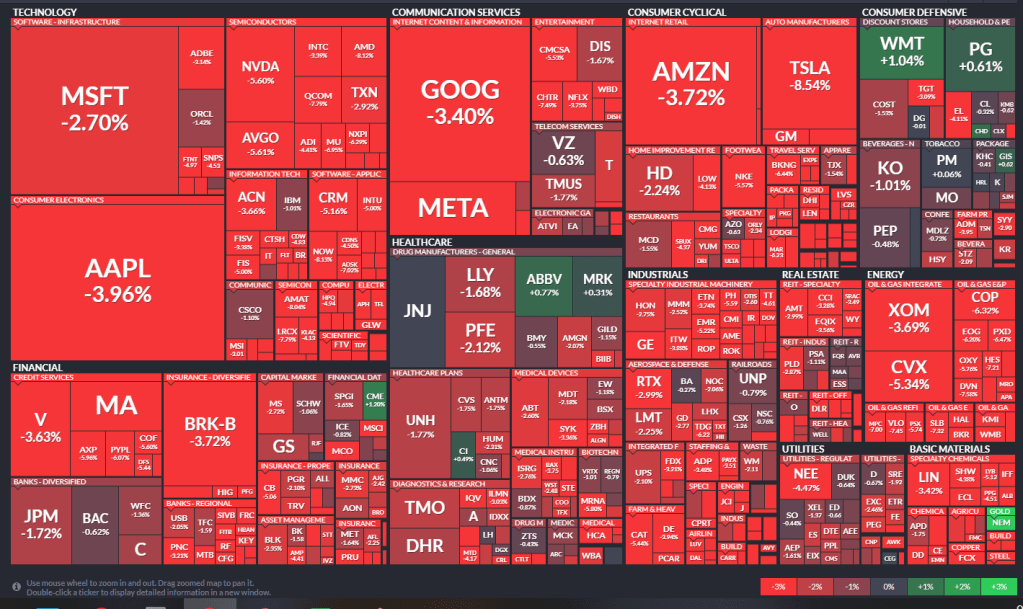 The S&P 500 fell by 3.25% to 3,666.77, its lowest level since Dec. 2020. It also erased gains after rising 1.5% on Wednesday. The Nasdaq Composite plunged by more than 4%, bringing the index down by more than 30% for the year to date. The Dow sank by 741 points, or 2.4%, to close below 30,000 for the first time since January 2021.
