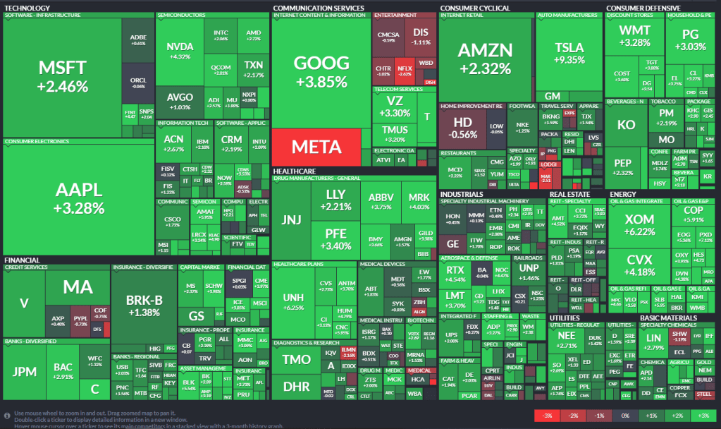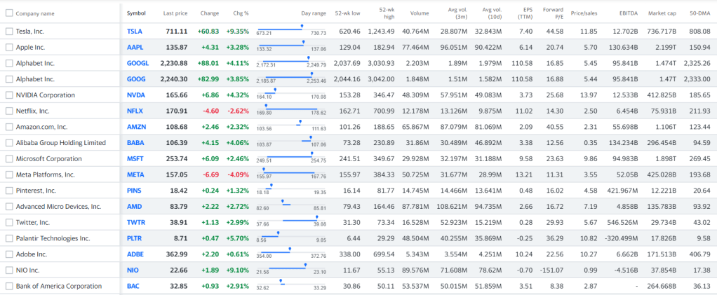 The stock market rallied on 21 June 22 with Tesla leading the way. At one stage, its share price increased more than 12% but it eventually closed with a 9.35% increase. The tech stocks and tech stocks were among the best performers.