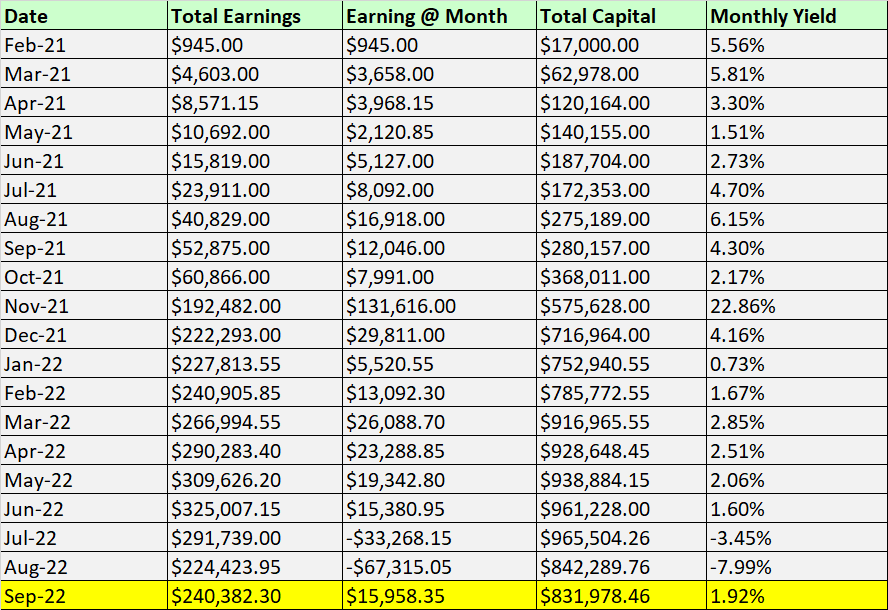 My overall earnings for the month of September increased by $15,958.35