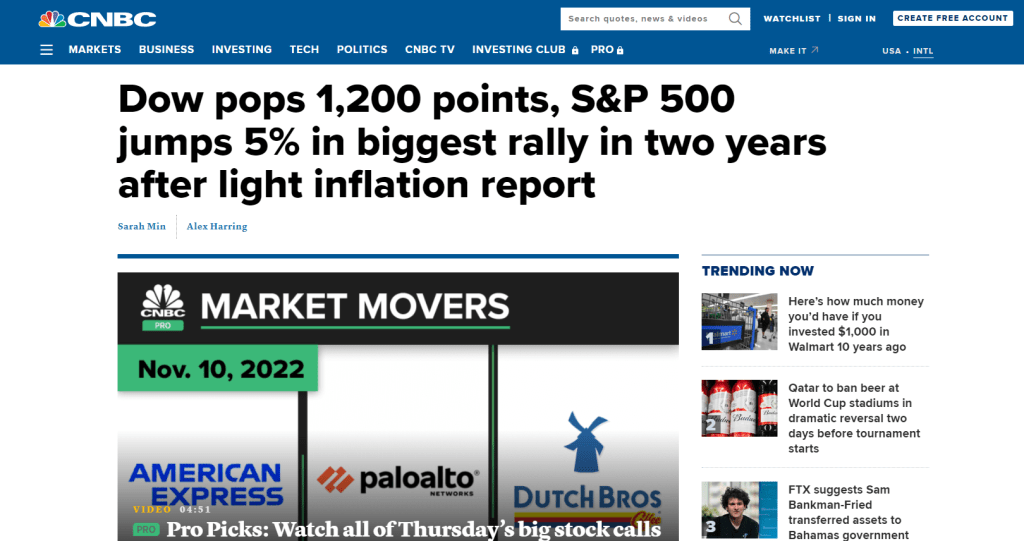 The October Consumer Price Index (CPI) reading came in lower than expected at 7.7% and the stock market rallied on 10 Nov 2022.