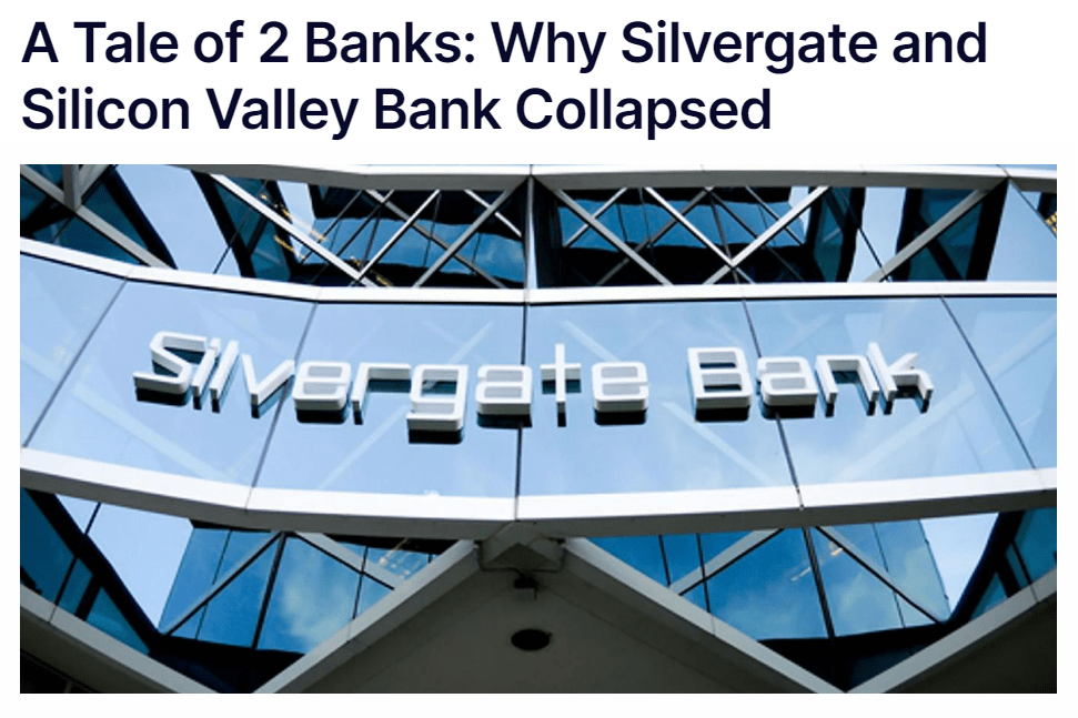 Elsewhere, reports have emerged on the collapse of Silicon Valley Bank and Silvergate Bank, both due to a bank run (a large number of bank customers withdraw their deposits because they believe the bank might fail).