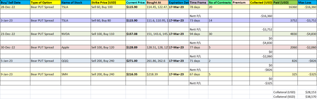 I was so convinced regarding his prediction that I started to build bearish positions at the start of the year. By 10 Jan 23, my Bear PUT spread positions have already reached $38.5k, all expiring on 17th March 2023, the same expiration date that he placed his bearish trades on.
