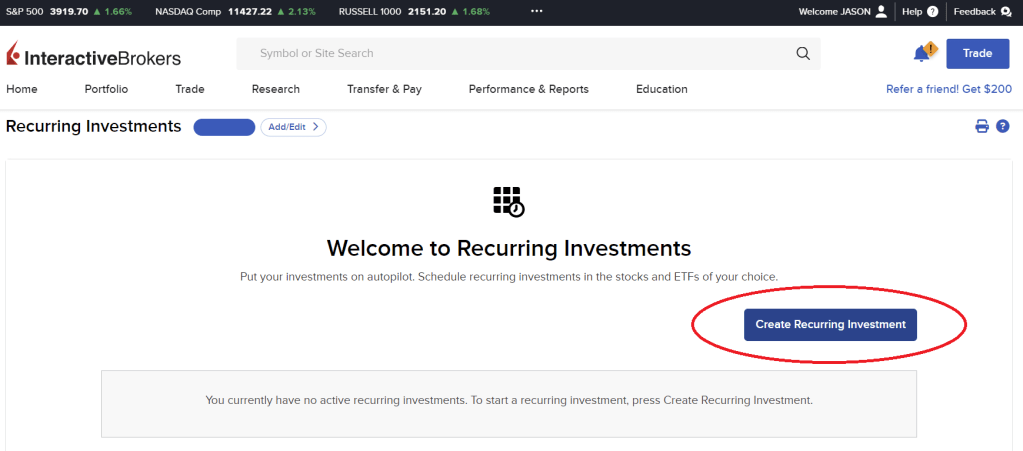 To use this function of recurring investments, you will need to use the Client Portal and log in through your web browser.