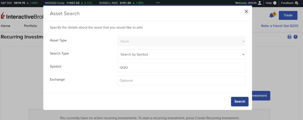 Step 3: Search for your ticker symbol, e.g. QQQ or SPY