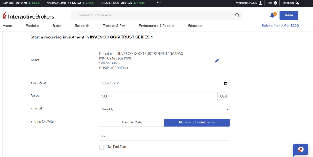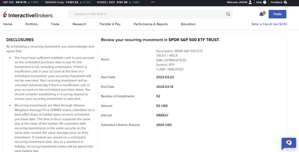 Sharing why I am doing Dollar Cost Average (DCA) into SPY and QQQ ETF for long-term investments and a step-by-step guide to doing it automatically with Interactive Brokers.