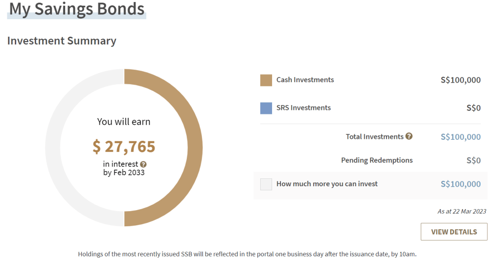 I hope you find this sharing useful and can help you better manage your wealth and savings in 2023 and beyond. If you are looking at a place to park your cash reserves, be able to withdraw in a short period of time and get higher interest than the banks, then SSB is a good consideration as it is capital guaranteed and interest guaranteed until the bond matures in 10 years, or when you decide to cash them out, whichever is earlier. The above 5 reasons may also be relevant to you.