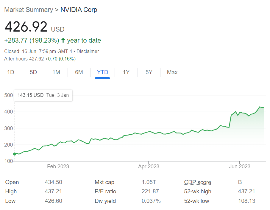 Since the start of the year, Nvidia has experienced a phenomenal rise in share price. Its YTD (Year To Date) performance is almost 200%.