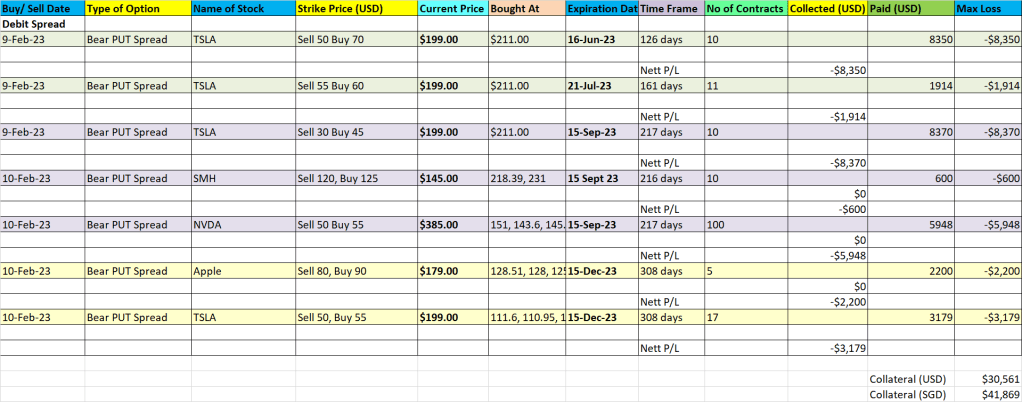 At one stage, these Tesla positions were in the green but I did not take profits as I thought Tesla’s share price could drop further. Little did I know that it was the last chance for me to exit these positions before Tesla’s share price rose 146% since the start of the year.
