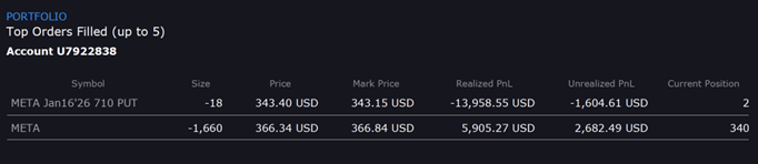 If I had seen the notification of the margin call, I would have activated the BUY PUT leg of the contract and sold off my 2000 Meta shares to get a maximum loss of USD200 for the 20 contracts. However, as IBKR sold off 18 of my 20 options contracts, I was unable to exercise the right to sell off all my shares at USD710.