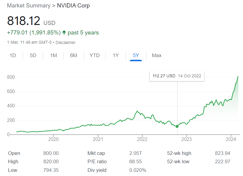 I think this is quite a good offer from WeBull because Nvidia is one of the top, if not the top company, leading the AI revolution. It has already surpassed Amazon and Alphabet (Google) as the 3rd most valuable company in the world with 2 trillion market cap and its share price has more than 7x since late 2022.