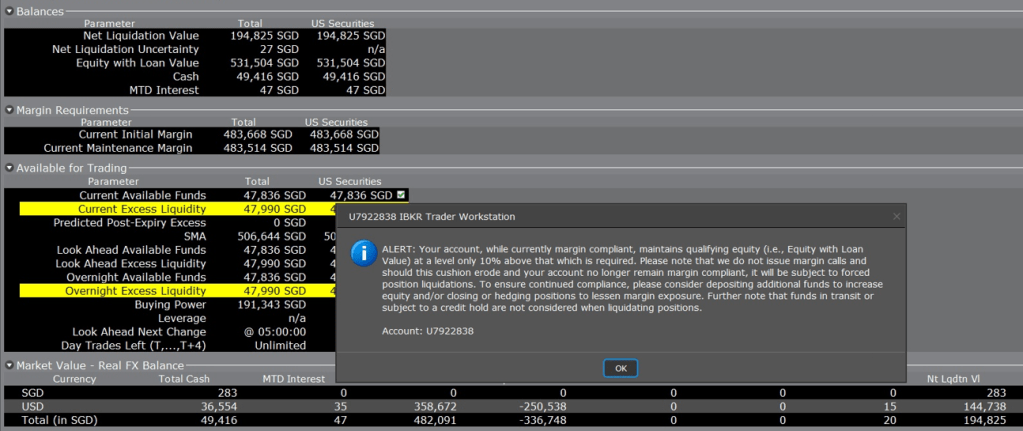 However, I started to face liquidity warnings because the rapid rise in Nvidia’s share price was increasing my maintenance margin and eating away my excess liquidity. It does not help that the share price of Tesla, the biggest position in my portfolio, kept dropping which further lowered my liquidity value.