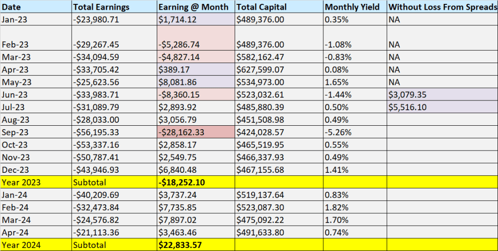 The strategies that I used for April 24 are the Selling Covered CALL, SOP Strategy, BULL CALL Spread Strategy, and buying OTM CALL/ PUT options, with the first being the most effective this month.