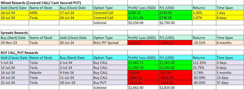 [24 July 24] +USD738 Profits, Closed My Tesla Covered CALL for profits