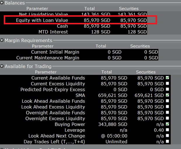 Hi Clement, if you refer to my previous update on my portfolio, you can see I have about S$860k if I sell all my shares and bond. If minus the 60k SSB, it will be around 800k of ELV. The 480k unrealised loss comes from me receiving very low premium when I sold CALL in early 2023 and because the share prices of both Palantir and NVDA have 10x, the premium skyrocketed. It is a LEAPS CALL with expiration in Dec 26 so Theta does not have much impact. I also sold CC when Tesla was around 100+ then it went to 400+, so premium also increased by a lot. When all these all together, it becomes 480k. Actually should be 496k as I am already 16k up before the liquidation happened. Fyi, I own 30 SELL CALL contracts on Nvidia (SP USD26), 5 SELL CALL Contract on Tesla (SP USD230) and 5 SELL CALL on Palantir (SP USD8).