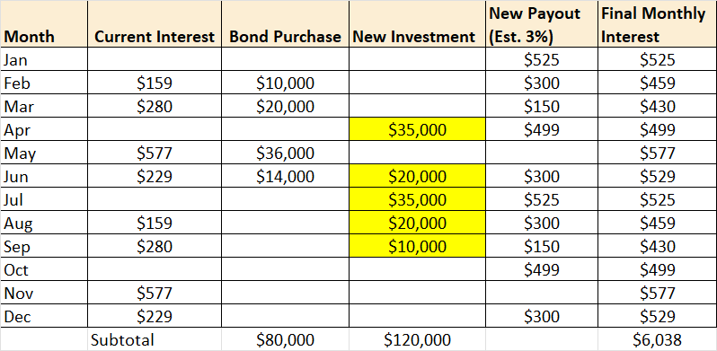 The monthly payout is likely to be lower because I am assuming 3% annual returns but the SSB interest rate has been dropping, in anticipation of the Federal interest rate cut.