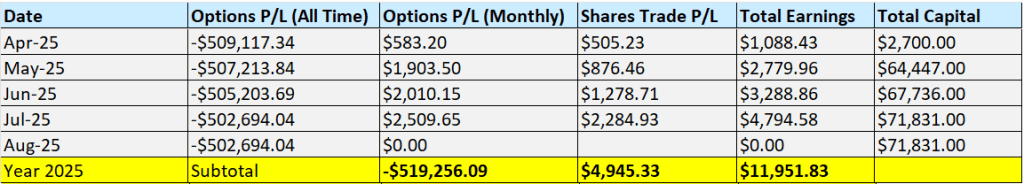 July 25 has been a relatively good month with about $4.79k coming in as a sideline income through options and shares trading. I have achieved my goal of earning a consistent monthly sideline income of about $2k ~ $3k, so I am really pleased with the results this month.