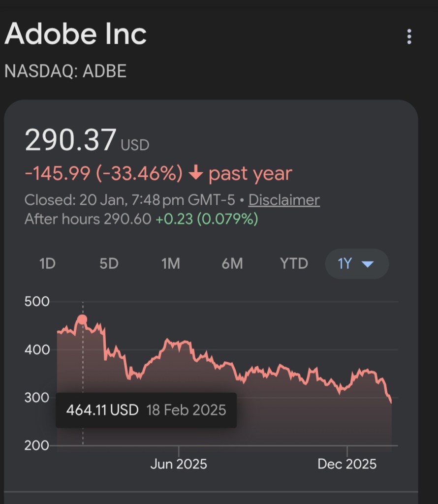 Just take a look at blue chip tech giant Adobe as an example. Its share price has plummeted 33.46% over the past year due to the rise in the role of AI in designing and video editing.